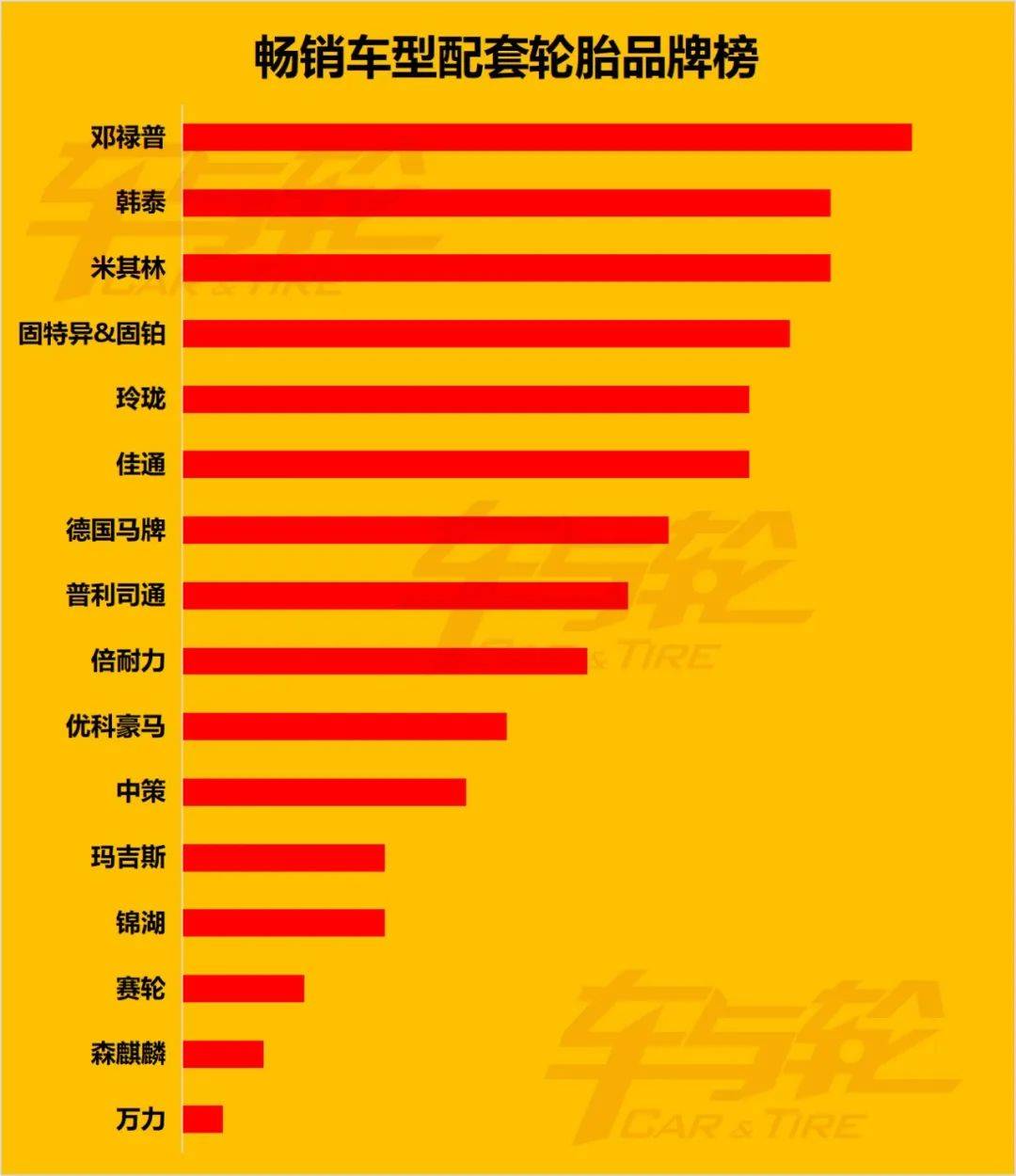 依据轿车销量,小邦也对原配轮胎品牌进行了计算,前几名依然是国外大牌占有,但值得一提的是,和之前比较,以中策橡胶(向阳轮胎)、小巧轮胎为代表的国产品牌,商场占有率逐步加大。