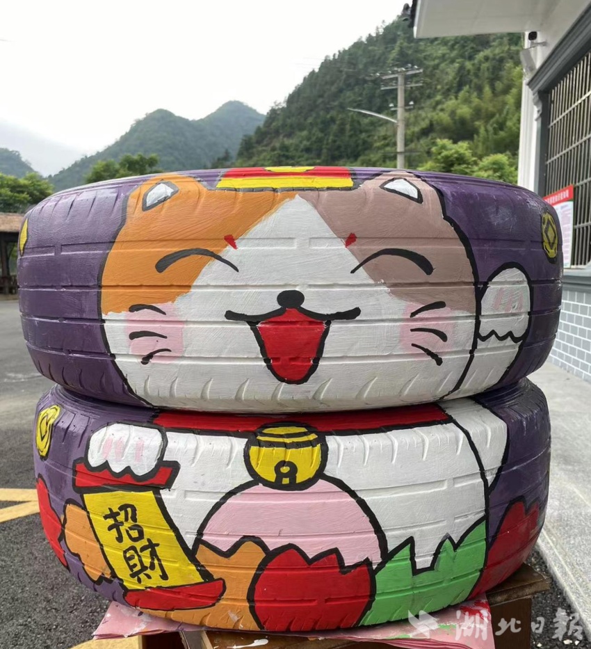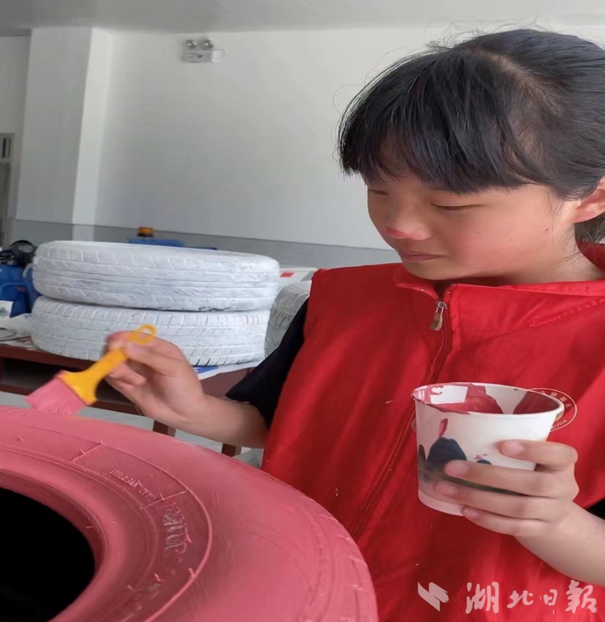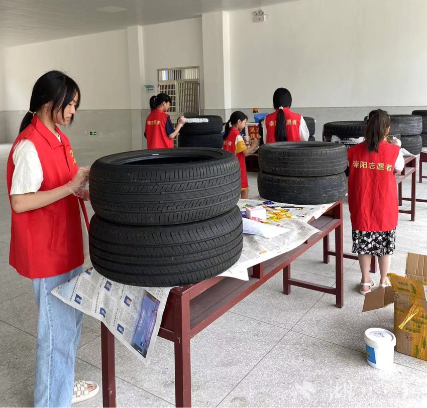 【48812】崇阳县高枧乡:废旧轮胎构思画 共“童”缔造夸姣园