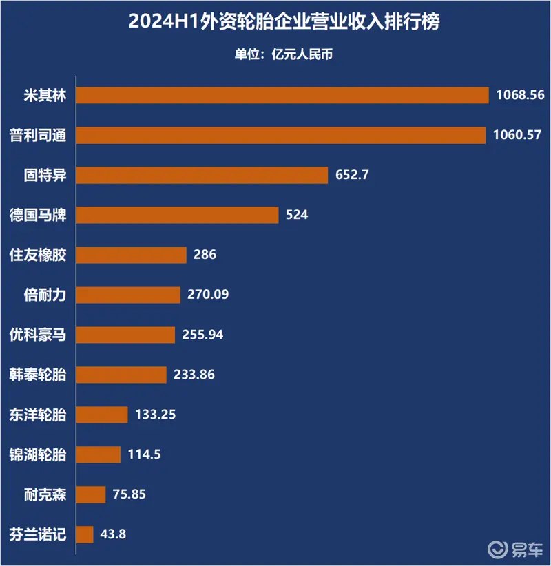 在这些外资大牌2024H1的排行榜中,排名基本与2023年75强榜单无异,米其林与普利司通与依然在争夺第一的位置。